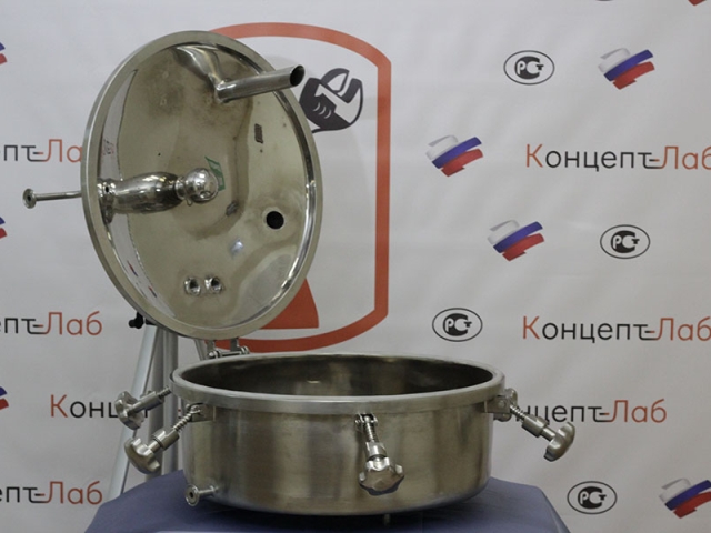 Ввод исходного сырья происходит через крышку емкости. К дополнительным штуцерам на крышке подключаются линии подачи инертного газа и ввода дополнительных компонентов.
