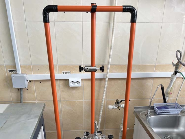 Реактор закреплен на легком, компактном, виброустойчивом стенде, который можно легко закрепить к полу.
