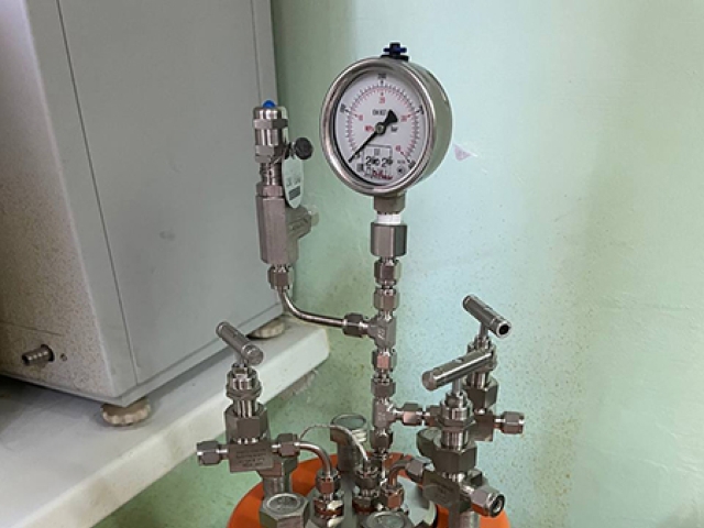 Давление внутри реактора отображает поверенный, аналоговый манометр из нержавеющей стали.