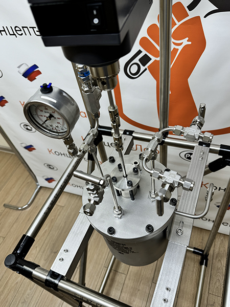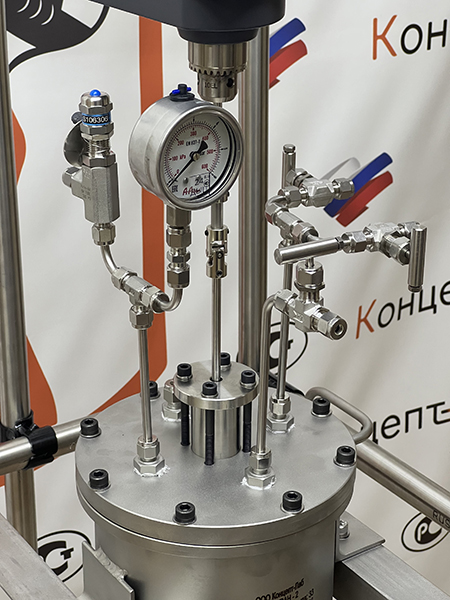 - подача и ввод продукта и инертных газов осуществляются через игольчатые краны на крышке реактора,