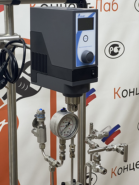 - над крышкой реактора установлена верхнеприводная мешалка,