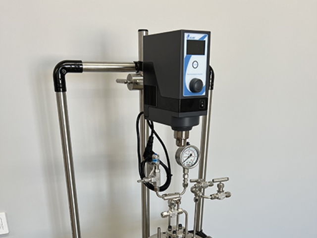 - Нагрев и охлаждение емкости осуществляется через жидкостную рубашку, перемешивание раствора при помощи верхнеприводной мешалки.