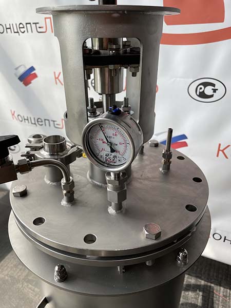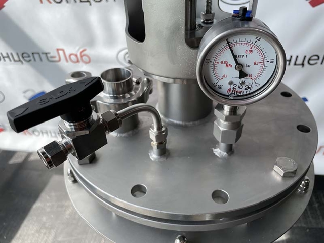 - Мановакуумметр установлен на крышке реактора и предназначен для измерения вакуума и давления внутри емкости.